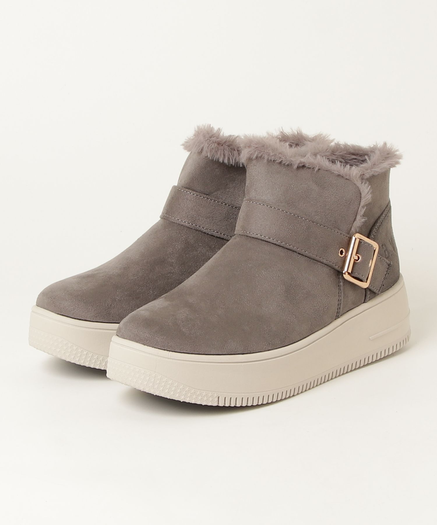 履き口にたっぷりとあしらわれたフェイクファーが、見た目にも暖かいショートブーツ。