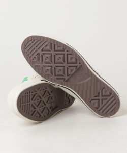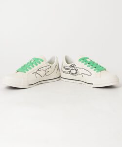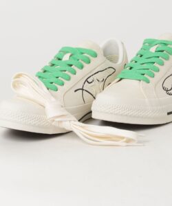 書き下ろしのヒールラベルと、サイン入りのビビットなグリーンのインソールもポイント。