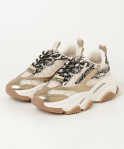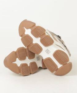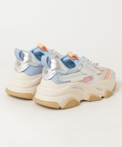 POSSESSION-E-XS ECOスニーカーは、サステナブルなファッションと洗練されたスタイルを両立させた一足です。存在感のある厚底ソールが自然なスタイルアップを叶え、柔らかなグラデーションカラーやライトブロンズのニュアンスカラーがコーディネートに程よいアクセントをプラスします。