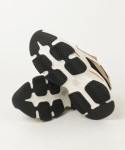 立体的に重ねられたパネルデザインと、シャープなライン使いがモードな雰囲気を演出します。厚みのあるソールはスタイルアップ効果だけでなく、クッション性にも優れ、長時間の着用でも快適な履き心地を実現。